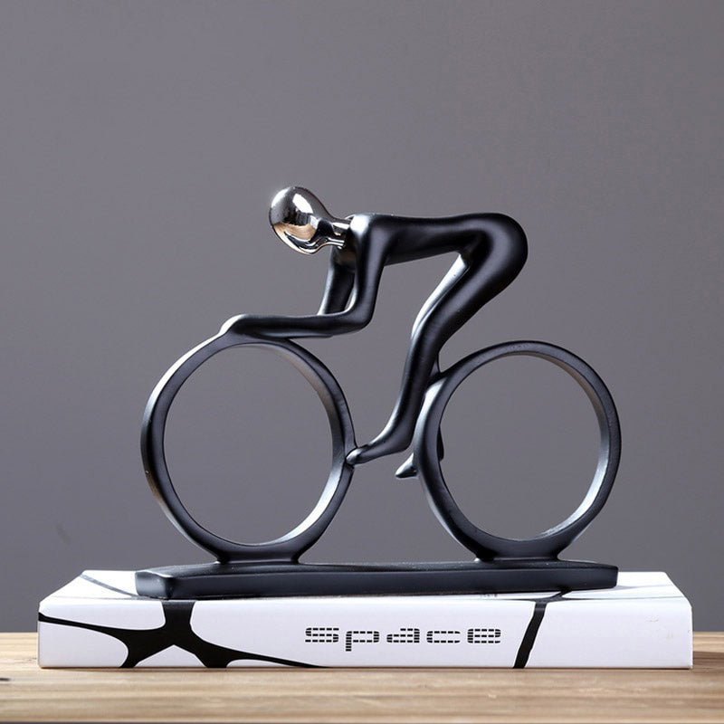 Het beeldje toont een fietser in abstracte, vloeiende lijnen die de essentie van beweging en dynamiek weergeven. Een minimalistische maar expressieve sculptuur die direct herkenbaar is voor iedereen met een liefde voor de fiets.